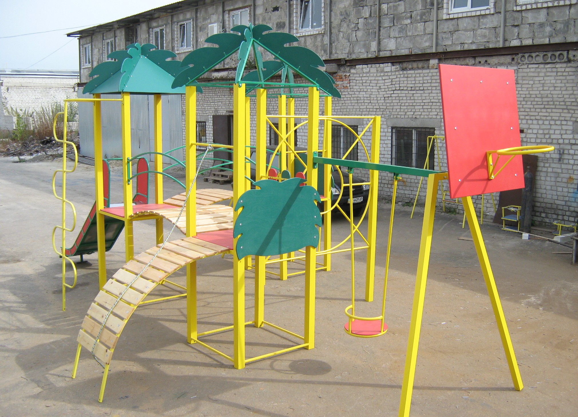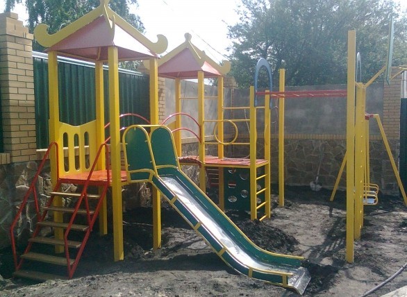 - безопасность изделий и используемой краски. Комплексы всегда яркие и веселые, при этом краска не выгорает на солнце и легко следить за чистотой конструкции;