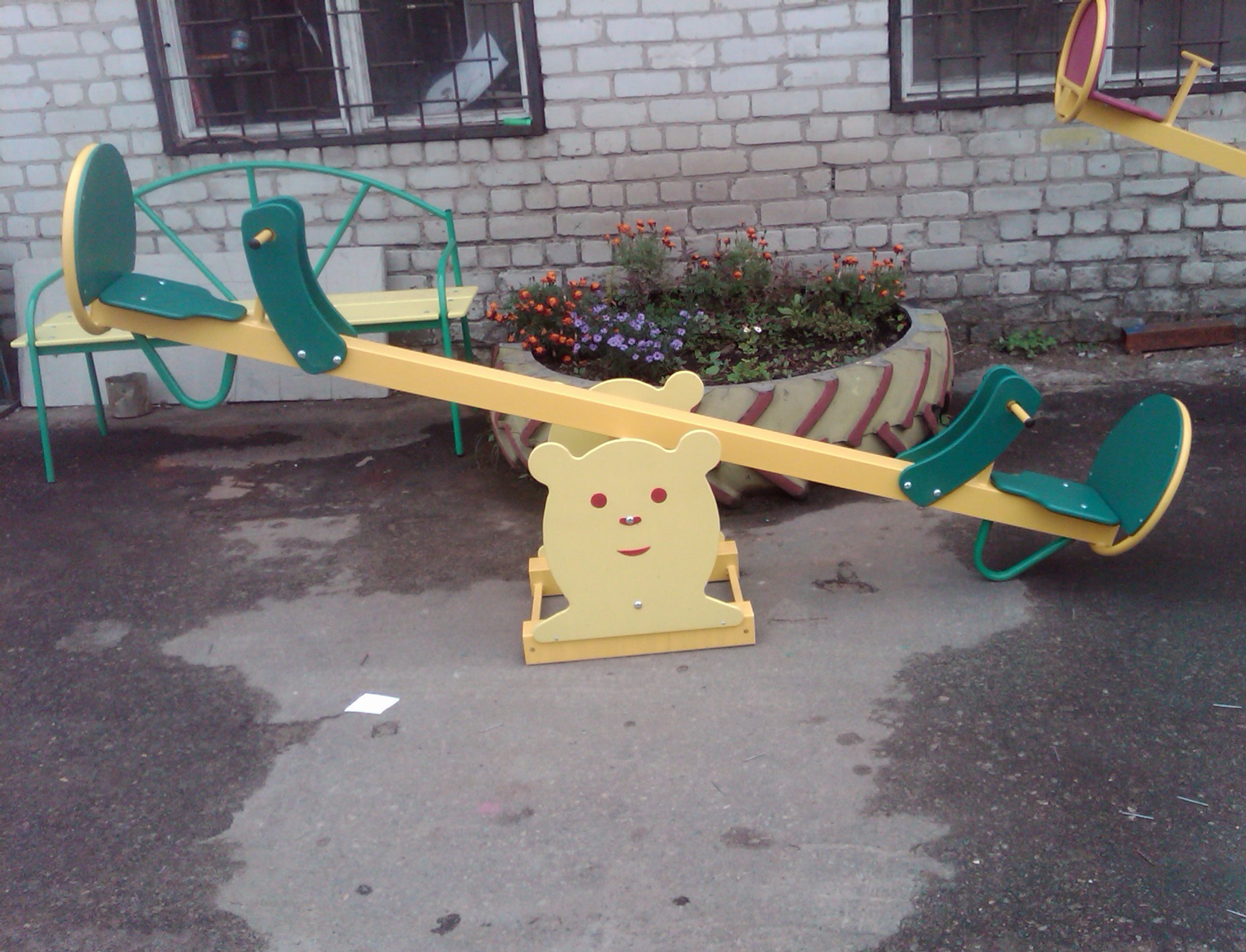 Как правило, качалка балансир по цене ниже новых модных детских комплексов. Фигурные горки или карусели стоят дороже. При этом, это привычный, безопасный аттракцион, который способствует: